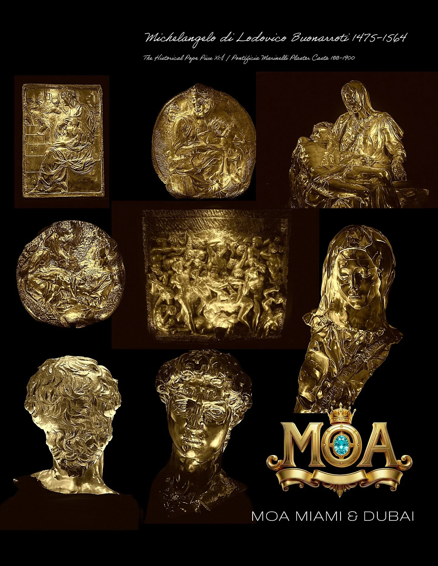 Glowing one of a kind Authentic Vatican Plaster casts of Michelangelo Buonarroti’s Precious metals creations will illuminate this ArtBasel Season the flamboyant shopping destination of the Dubai Mall with MOA typical Fine Art superiority